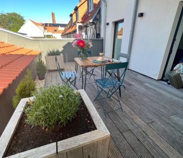 Food & DrinkTea/Coffee maker, Bottle of waterBathroomShower, Hairdryer, Toilet, Private Bathroom, Towels/Sheets (extra fee), Towels, Toilet paperMedia & TechnologyTV, Satellite channels, Flat-screen TV, Streaming service (like Netflix)KitchenKitchenette, Refrigerator, Dishwasher, Washing machine, Kitchen, Electric kettle, Kitchenware, Oven, Stovetop, Toaster, Cleaning products, Coffee machine, Dining table, Wine glassesOutdoorsBalcony, Outdoor furniture, Outdoor dining areaLiving AreaDesk, Sitting area, Sofa, Dining areaGeneralFan, Heating, Trash cans, Fire extinguisher, Key access, Carbon monoxide detectorViewView, City view, Inner courtyard viewBedroomAlarm clock, Wardrobe or closet, LinensAccessibilityUpper floors accessible by stairs onlyBuilding CharacteristicsDetached, Private apartment in buildingRoom AmenitiesDrying rack for clothing, Sofa bed, Socket near the bed, Non-feather pillowCleanliness & disinfectionHand sanitizer |