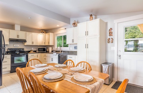 Prepare meals in our fully-equipped kitchen with all principal and minor appliances, including a Vitamix, KitchenAid, and Instapot. Or, embrace outdoor dining and relaxation on the deck while cooking up a delightful meal on the BBQ. In the evenings, cozy up by the propane fireplace and indulge in your favorite shows on the 56" Smart TV (cable and high-speed internet included), or enjoy the array of jigsaw puzzles, books, and games suitable for all ages.