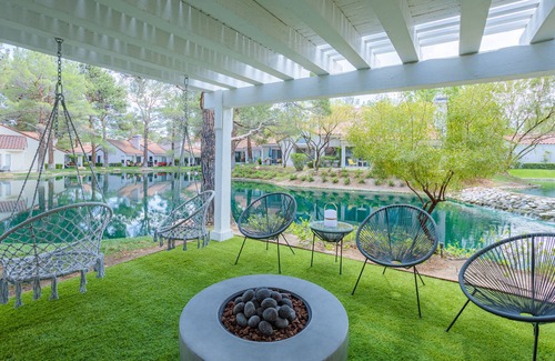 Welcome to our fully renovated 2 bedroom, 2 bathroom townhouse with a stunning lakeside view. Our newly refurbished townhouse offers all the modern comforts you need, including new furnishings, a fully equipped kitchen, and a steam room integrated bathroom. Outside, our lakeside view and firepit provide the perfect setting for a cozy evening under the stars. Whether you're here for work or play, our townhouse is the perfect place to stay.