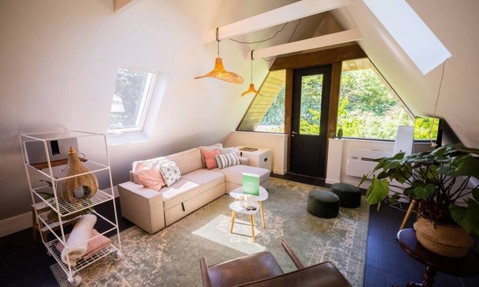 This unique stylish loft is surrounded by green nature and gives you a very peaceful feeling. Ideally located just outside the city centre of Eindhoven. The loft comes with free private car parking and within 6 minutes by car, 10 minutes by bike and 12 minutes by public transport you are in the city centre of Eindhoven. The loft has a comfortable queen-sized bed and a double sofa-bed in the living room. This wonderful accommodation ensures you fantastic stay.