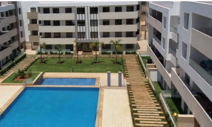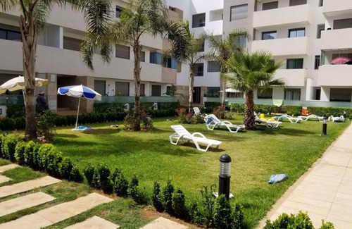 Looking for convenience? Well, look no further! This brand new groundfloor apartment will win you over. Located in the wonderful region of Mimosa, El Mansouria, it is near everywhere you want to be. It features two bed bedrooms and a living room overlooking a big swimming pool, one bathroom, equipped kitchen, including a microwave, fridge, washing machine, air-conditioner and heater in every room, outdoor swimming pool, terrace, flat-screen TV with satellite channels and underground parking. It’s a 5-minute walk from Sablette beach and not too far from Sable d’or, Dahomy and David beaches. The Go karting village and Bahia Golf Beach are only a few minutes drive from the apartment. It’s surrounded by Skoura and Les Terrasses restaurants, Mansbay and Marjane shopping centers, as well as Mimosa and Oubaha international camps. The apartment is about 38 km from Casablanca, 5 km from Mohammedia and 6 km from Bouznika. It accommodates 4 people. The nearest airport is Mohammed V International Airport.