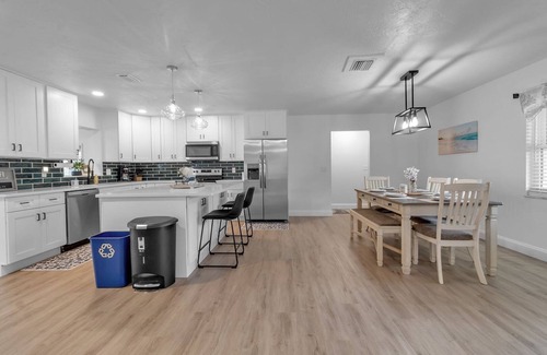 Be one of our first guests in this spectacular ranch style pool home! 3BR/2BA with a 2 car garage. This home has been updated throughout. When you enter this home you are welcomed with a wide open floor plan perfect for entertaining. Master bedroom has a king size bed. The attached bathroom has a walk-in shower. Guest bedroom number 1 has 2 twin beds, guest bedroom 2 has a Queen bed. Every bedroom is equip with a smart TV.