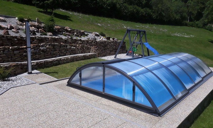 Enjoy the private outdoor space with a lawn, seasonal swimming pool (available from June 15 to September 15), an outdoor shower, pergola, garden furniture, a barbecue house, and a children's playground featuring a slide and swing.