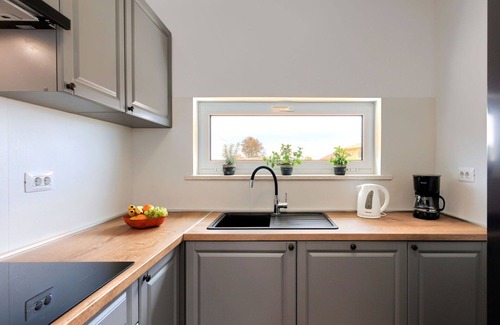 Nearby amenities include a shop located 150 m away, a supermarket at 5 km, and a restaurant within 3.2 km. The sandy beach is 7 km away, while a pebble beach is also located 7 km from the property. Walking paths and a cycle lane are accessible at 100 m and 150 m from the house, respectively. The owner does not accept youth groups, making it an ideal destination for families.