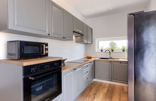 Villa Dora is a beautiful single-family house with two stories, built in 2023, located in the hamlet of Jadreški, Croatia, about 7.5 km from the center of Pula. It offers a private property of 394 m2, featuring a garden with a lawn, an angular swimming pool (6 x 4 m, depth 150 cm, seasonal availability from May 1 to October 15), an outdoor shower, and a barbecue area. The vacation rental is equipped with internet access, a washing machine, and parking for two cars on the premises.