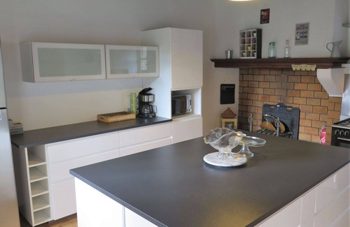 The upper level of the house consists of two rooms, each with a double bed measuring 180 cm wide and 190 cm long. There is also a room with two beds measuring 90 cm wide and 190 cm long, as well as a children's room with a single bed measuring 90 cm wide and 190 cm long. The house has an additional bathroom with a shower and toilet, and a double hand-basin. The property offers a large terrace with outdoor furniture, a barbecue area, and deck chairs for 8 people, providing a beautiful view. Guests have access to a washing machine, dryer, iron, children's high chair, and a baby cot suitable for up to 2-year-olds. Internet access is available via free WiFi throughout the house. Please note that this is a non-smoking property with a smoke alarm installed.