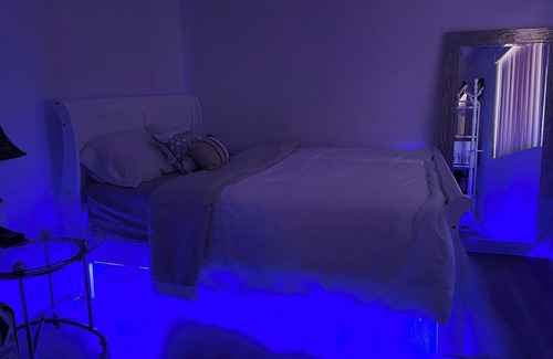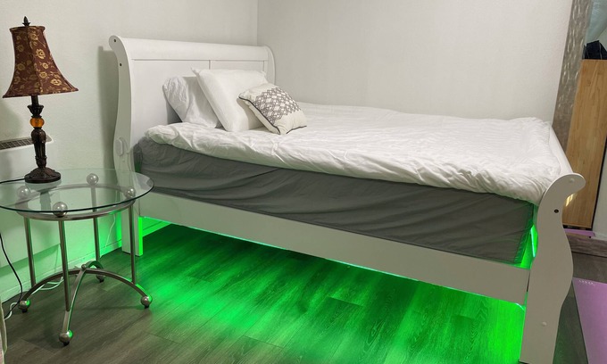 Self check-in Cozy bedroom in a quiet house.8 min to Seattle Paine airport or Boeing.Private entrance by garage to 1st floor. Separate space with a locked stair door from the 2nd floor.Room is spacious with cute sofa ,computer desk ,Fire TV, and clean bed linen.Bed is decorated with smart LED strip light .The RGBIC Night Light with joyful music helps you to relax mostly.Private Bathroom, Refrige, Simple cooking by microwave n rice cooker. Reserve now to pick up your color and music!Extra Twin bed is available by requesting.Thank you !