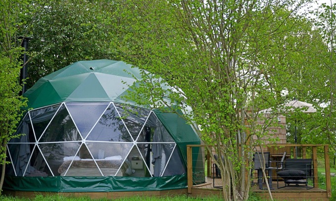 The property offers dedicated parking for two vehicles and includes outdoor features such as a barbecue area. An iron is provided for your convenience. The "Hever Luxury Dome" maintains a strict non-smoking policy and is equipped with a smoke alarm for your safety.