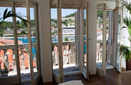 Wonderful Villa Ines with a magnificent view of the Riva and harbor beyond. Villa is located in the historic heart of the seaside town of Hvar. From its magnificent stone baroque balcony, it captures breathtaking views of the Riva esplanade and the harbor beyond. Modern yachts and classic sailboats adorn the waterfront just meters away while Fortica, the 16th Century Fortress, protectively watches over this popular port of call and the surrounding Pakleni Islands.