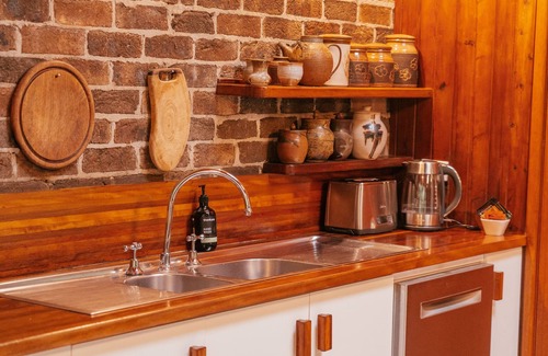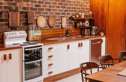 The main house features include a large open plan living area, dining room and kitchen with modern stainless-steel appliances and espresso machine. A fireplace is in the centre of the living area making it perfect for warming up the home on cold winter nights. Firewood is supplied for guests.