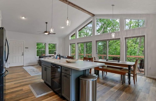 Welcome to Wooded bliss, your upscale vacation mountain house with beautiful Cacapon River access, surrounded by the woods, onsite outdoor firepit, and more! Inside you'll find 3 bd, 3 full bth, & an open concept living space with spectacular views from every room. Out on the large deck you'll find a private hot tub, grill and plenty of seating along with the firepit. This property also features a community park area with access to the river, picnic tables & grills. A must stay, getaway!