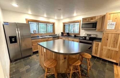The lower level has two bedrooms with queen sized beds and smart TVs, as well as a fourth shared bathroom with a shower. The rec room has a sofa, tables and chairs for board and card games, a foosball table, as well as a 65” smart TV - bring your gaming system! There is also a bar that is an actual front half of a boat! Enjoy spending quality time with your friends and family and unwind after a long day at the water park or the ski resort. There is complimentary high speed fiber optic Wi-Fi in the home, as well a laundry room with a washer and dryer.