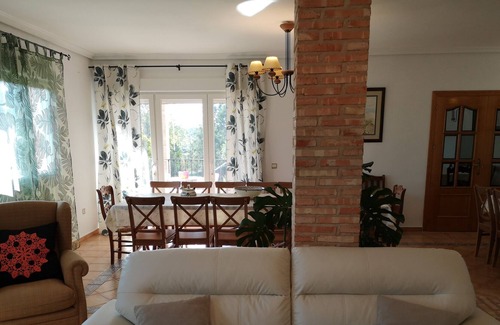 Villa with 400 square meters of housing, 30 m2 of porches and 100 m2 of terraces, on a 5,000 m2 farm, next to the Bastida Park, 7 min. from the center of Toledo and 9 min. of the Puy du Fou Park. 50 m2 room. Room for children of 30 m2. Extra beds in some rooms. Pool area with pool of 60 m2, porch, kitchen, bathroom, terrace and barbecue. Olive trees, pines, holm oaks, junipers in a natural environment in the urban area of Toledo, ideal for groups and families.