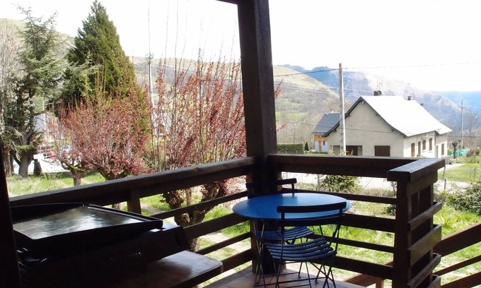 Wooden chalet completely renovated in 2016, and last novelty: its sun-drenched terrace, chalet starting from hiking or biking, 8 km from the slopes, 8 km from the Luchon thermal baths, lounge - dining room with fireplace. wood, last generation, terrace overlooking the Pyrenees and the ski resort of Agudes, terrace by a carpenter craftsman of the valley of Oueil, fully equipped kitchen refrigerator -freezer, dishwasher, ceramic hob, hood , oven, microwave, 1 bedroom with bed 160, 2 bedrooms with bed 140, 1 bedroom with 2 bunk beds and 1 armchair bed with slatted frame, 2 bathroom with toilet, TV boxing internet wifi, baby-child equipment: folding bed with changing table, playpen, deckchair, high chair, Babycook, cutlery, child's bath, pot, covered terrace with plancha, garage to put a car and all the equipment of skiing or hiking, garden with its round table under arbor, deck chairs and table.