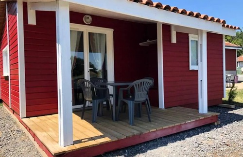 Accommodation: This fully equipped accommodation is located in the heart of our family campsite. It is ideal for holidays with children. The chalets are installed on spacious pitches without fence, allowing several families to sejoin side by side. Parking pitches are close to the chalet. It has two bedrooms. The master bedroom is equipped with a double bed. The second bedroom has two bunk beds. An equipped kitchenette is also available.