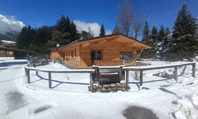 Wooden chalet surrounded by greenery, ski slopes accessible by skis. Large private garden of 1,000 m2 with covered and uncovered barbecue.