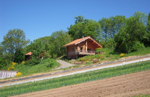 40 m² wooden chalet on the ground floor + mezzanine bedroom. Living room with kitchen and lounge (sofa bed), covered terrace, internet connection available from a PC only (does not work with tablets). Joëlle and Jacques provide bed linens and firewood, all included in the price! A washing machine is available from the owner. Another rural cottage for 3 people is available for rent nearby (no. [hidden]Parking is available 50 meters from the cottage. You'll love the view (Monts du Forez), the warm atmosphere, the tranquility of the site, and the decor. Solar panels, a wood-burning stove (the only heating source, managed by the guests), and composting toilets. Ideal for hiking and nature lovers. You can also buy our organic vegetables, jams, and chutneys. Welcome to our home.