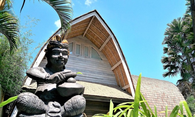 It is a unique building design " an old traditional Balinese architecture ", constructed mainly using local old coconut wood which show unique black fiber strips, woven bamboo ceiling, and the roof using the famous borneo ironwood.