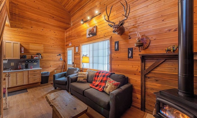 10. Dogs are allowed. Guests will be charged a pet fee per day per dog. You are expected and required to dispose of your pet's waste and keep your dog on a leash at all times. Do not leave your pet unattended in the cabin. All pet owners must bring their own furniture covers (i.e: sheets or blankets brought from home) if you wish to allow your pets on the furniture including beds.