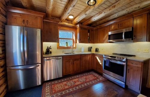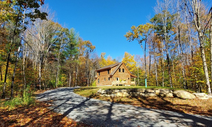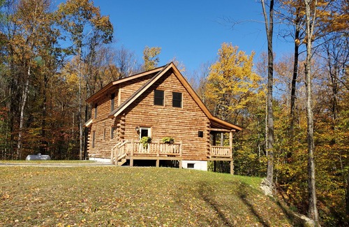 Lovely craftsman-built log home with modern amenities on 50 acres. Private 10 x 32' covered rear deck overlooking beautiful woodland views. Property has marked walking trails and the Appalachian Trail is within 1/2 mile. Local ski resorts (Otis Ridge, Butternut and Jiminy Peak) are close by and many arts and culture venues (Jacob's Pillow, Tanglewood, etc.) are within a short drive. The towns of Lenox, Lee, Great Barrington and Stockbridge provide great shopping and restaurants. This property is perfect for couples or families. It is an outdoor paradise perfect for hiking and snowshoeing. Dogs welcome!