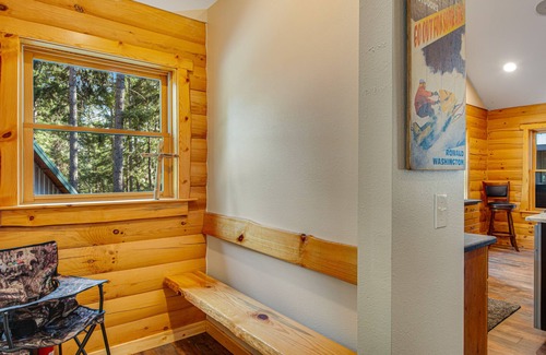 A wealth of atmosphere and entertainment awaits at this log lodge in the evergreen woods of Ronald, where you'll come home from your daily excursions to an at-home game room with a pool table, pinball, an arcade hoop-shoot, and a dart board.