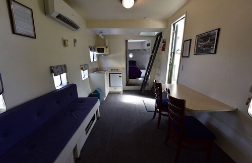 It is for the true adventurer. One bed is located up in the cockpit and you must be fit to climb the steep ladder to access the controls and that sleeping area. As such the upstairs is more suited for fit children. Children MUST BE older than 8 years of age. This sleeping area can also be hot in the summer months.