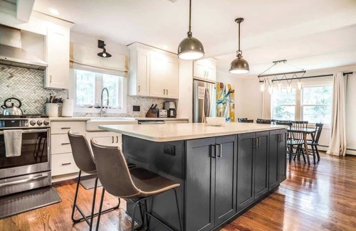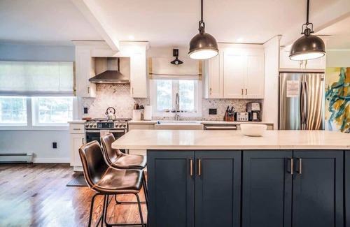 Featured in Hudson Valley Style Magazine, this fully updated modern farmhouse is ready to host. Radiant-heated full baths, whole-house generator, PRIVATE heated saltwater pool (schedule/weather permitting), four-season porch, indoor fireplace, fully equipped kitchen, outdoor grill, etc. Basement includes ping pong and pool tables. All bedrooms and full baths upstairs. Half bath on the main floor.