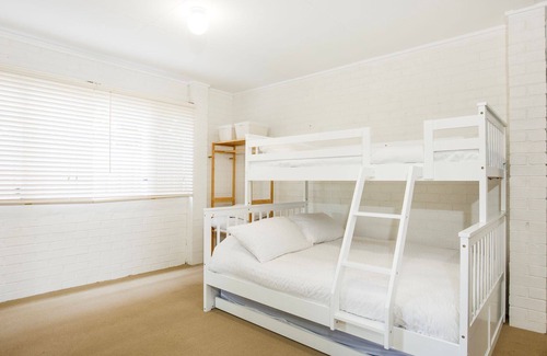 - Bedroom 1 has 1x Tri-bunk bed (1 double below, 1 single on top), 1 x Trundle bed.