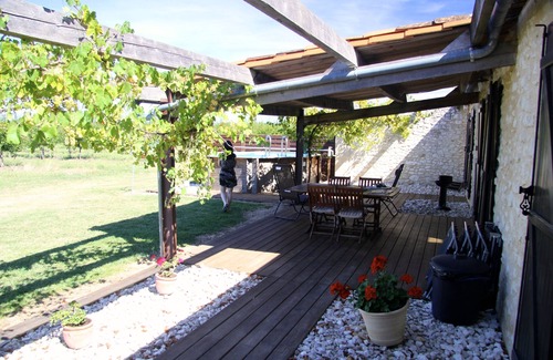 Suitable for everyone! For couples or families with children and babies of any age or a group of friends, this ground floor workshop conversion stands in the middle of 3.5 acres of private grounds, away from roads and surrounded by vines, orchards, wildlife and stunning views across the Dordogne Valley.