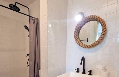 This 1-bedroom, 1-bathroom rental features a BBQ grill and air conditioning. Bathroom amenities include a hair dryer, towels, and toilet paper. The kitchenette is equipped with an oven, a stovetop, and a refrigerator, as well as an electric kettle, a microwave, and cookware.