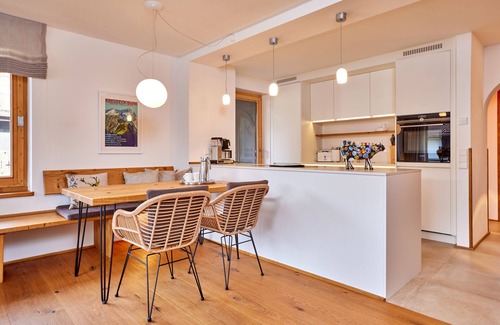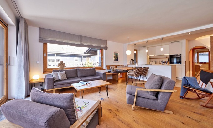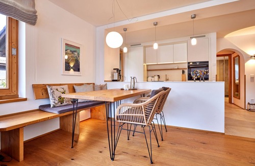 Located on the first floor, a very special feel-good place awaits you in this 85 sqm flat. High-quality furnishings, natural materials and many special details result in a harmonious combination of high-quality design and alpine charm with feel-good factor.