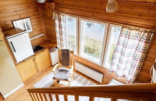 Wooden cabin 1995, renovated in 2010 and 2020, kitchen, living room, bedroom (11 m²) double bed, bedroom (7 m²) 120 cm wide bed, on the loft two beds (11 m², room height 230 cm), washroom with shower and toilet, renovated in 2025.