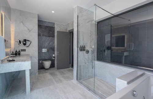 Bathrooms include showers with rainfall showerheads, bathrobes, slippers, and complimentary toiletries. Business-friendly amenities include desks, desk chairs, and phones. Additionally, rooms include complimentary bottled water and hair dryers. Hypo-allergenic bedding, change of towels, and change of bedsheets can be requested. Housekeeping is provided daily.