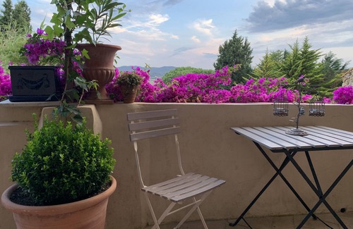 Distributed on 2 floors, 3 bedrooms and 2 bathrooms. South-facing and sheltered from the wind Tramontana. The house is located in a very quiet area, there is wifi throughout the house.