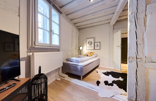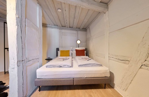 In the middle of the old town and surrounded by historic buildings, the newly renovated and listed apartment from 1719 offers a real wow effect.
