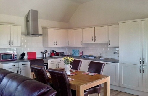 There is a large kitchen/diner with spectacular sea views over Moelfre Bay and Penmon which is fully equipped with washing machine, dishwasher, fridge/ freezer, cooker, hob and microwave. It is fully heated with a wood burning stove for those cold Winter cosy nights in. It also has the benefit of solar panels.