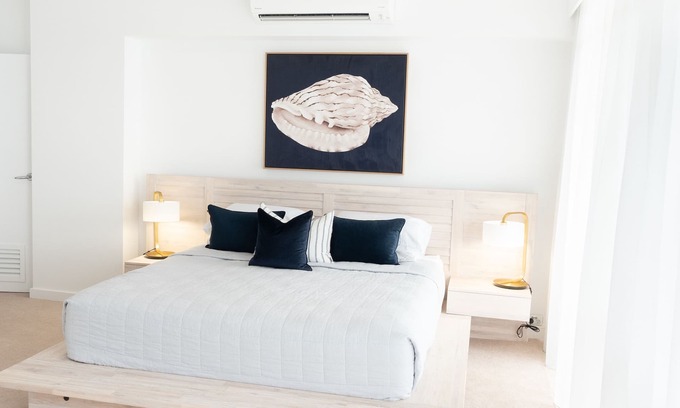 Each of the 4 bedrooms are spacious but the master suite takes contemporary design and style to a new level, with its own lounge and private balcony, walk-in wardrobe and breathtaking spa bathroom overlooking Catseye Beach. Impeccable Hamptons styling complements the open spaces and soothes the soul.