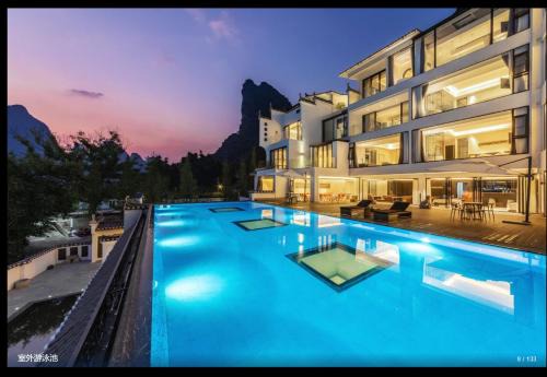 Located in Yangshuo, 2.1 miles from Darongshu Scenic Area, Yangshuo Mountain Vista Courtyard provides accommodations with an outdoor swimming pool, free private parking, a fitness center and a garden. Among the various facilities are a shared lounge and a bar. The property has a 24-hour front desk, a shuttle service, a kids' club and free WiFi throughout the property. Complete with a private bathroom equipped with a shower and free toiletries, all guest rooms at the hotel have a flat-screen TV and air conditioning, and certain rooms will provide you with a terrace. The rooms will provide guests with a fridge. The breakfast offers buffet, à la carte or continental options. At Yangshuo Mountain Vista Courtyard you'll find a restaurant serving Cantonese, Chinese and Pizza cuisine. Vegetarian and dairy-free options can also be requested. The accommodation has a playground. The area is popular for cycling, and bike rental is available at Yangshuo Mountain Vista Courtyard. Yangshuo South Bus Station is 4.1 miles from the hotel, while Moon Hill is 2.7 miles away. Guilin Liangjiang International Airport is 52 miles from the property.