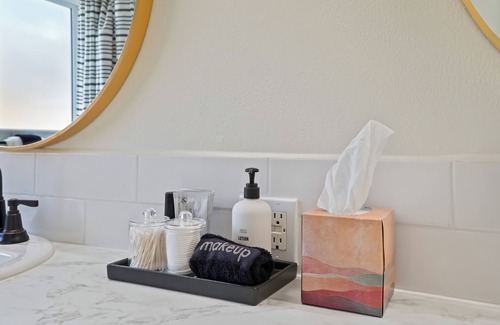- Fully equipped kitchen complete w/ stocked coffee & tea bar!