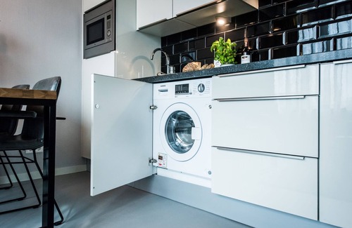 Each apartment provides a kitchen with a refrigerator, an oven, a stovetop, and a microwave. For a bit of entertainment, a flat-screen TV comes with cable channels, and guests can also appreciate conveniences like a washing machine and a dining area. Weekly housekeeping is available.
