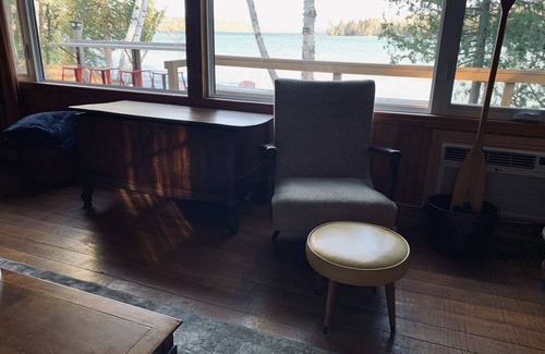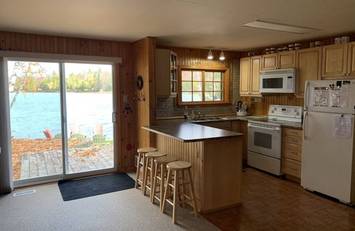 This is a 1950's cottage with a traditional cabin feel, it has a new addition to the property and it's known as the Yellow Cottage on Sandy Lake. As you enter the property it is surrounded by large tall trees and the front views show a view like you've never seen before. The beautiful sandy lake.