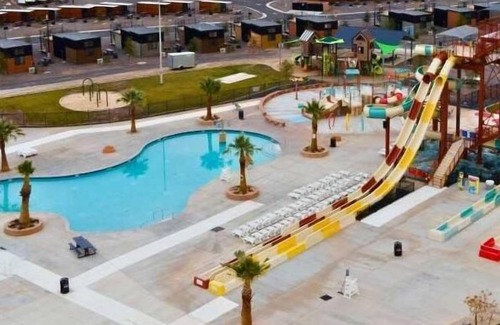 A large 1 bedroom / 1 set lower bunks with 2 complete bathrooms with a glamping cabin perfect for ADA compliance. Upstairs leads into a nice loft for the younger ones to enjoy. There are spiral stairs that lead onto the top deck. We also designed a lower seating area with room for a wheelchair or walker for gatherings of the entire family. Note: (ADA-compliant cabins are only 1 bedroom / 1 set bunks /1 ADA bath). Check out is at 10am, Check-in is at 4pm. Water zone and floating obstacle course access is included in your stay.