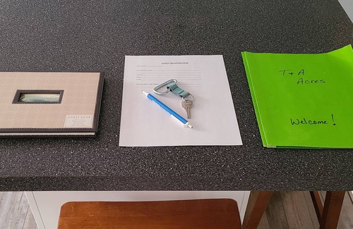Road 601 to Songbird lane. Follow the gravel drive. It curves to the left and then we are the first house on the right. The only 2 story house. Signs are posted for T&A or the address 58569. Park in front of the deck towards the left.