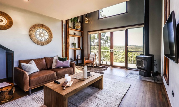 Welcome to luxury, to wellbeing, to exclusivity. Welcome to Clifftop at Hepburn. From the moment you step into Clifftop at Hepburn, you're in another world. A world where flickering flames and floor-to-ceiling windows frame breathtaking panoramic views that plunge from the site of an old pine forest down a sheer cliff face, unrolling onto native bushland below.