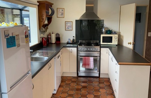 A clean well-presented house which is quick to warm with heat pump and double glazing in a convenient location 5 minutes' walk from the township amenities. The Town and country club is 100m down the street where non -members will be welcomed to enjoy the restaurant and bar and locals chat ! The house offers lovely views of the bush clad mountains with a beautiful private and fully fenced garden which is safe for kids and a pet. Watch the tuis and bell birds swoop into the feeder in this quiet location. The kitchen and lounge are well proportioned with a gas and electric stove. Electric heat pump heats the whole house so quickly which is essential when returning from a day trip. Free Sky tv and fibre wifi are real bonuses. The comfortable beds are constantly reviewed as a positive of peoples stays. The second bedroom can be made up as a king bed or on request 2 singles offering family flexibility. A separate toilet from the bathroom with a bath and strong jetted gas shower are close to bedrooms. There are puzzles and games for the family to enjoy plus a BBQ .