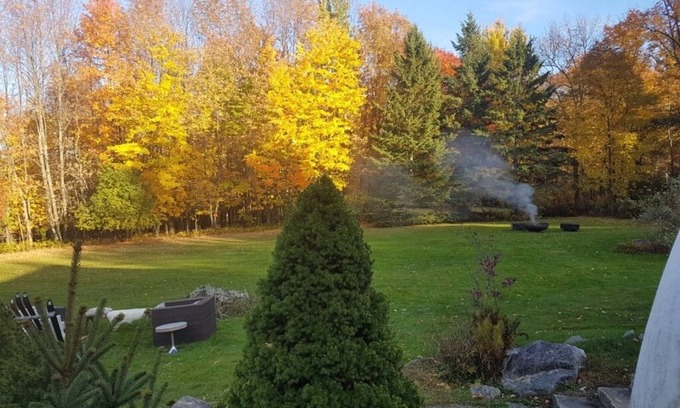 5 acres on a quiet road, private filtered pond, barn with games room, hot tub. Main house with a designer kitchen, large living room and dining room. Cozy bedrooms with a gorgeous high end bathroom. 20 minutes from Bromont and Sutton ski areas.