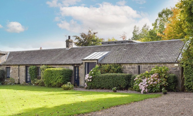 Bathroom: Bath, Walk-In Shower, Heated Towel Rail, Toilet. Oil central heating, electricity, bed linen, towels and Wi-Fi included. Initial fuel for open fire and wood burner included. Travel cot, highchair, stairgate and fireguard. Welcome pack. . Private parking for 2 cars. No smoking.. Tigh-nam-Muc is a stone-built cottage which forms part of an 18th-century farm steading. It represents ’the best of both worlds’, set in the countryside yet within very easy access of Edinburgh by bus or by car. The traditional exterior of the cottage is complemented by a comfortable, spacious and bright contemporary interior converted by architect Michael Gray. The cottage has four bedrooms, one with en-suite facilities. The open-plan kitchen, dining and living space provides bright, comfortable accommodation with an open fire and wood burner. There is a TV studio on an upper level from which there are tremendous long views to the Pentlands and the Lammermuir Hills. In addition to the en-suite bathroom, there is another family bathroom with additional laundry space. There is also a boot room for coats and boots at the rear entrance. The private garden which includes a barbecue and garden furniture provides a place for young children to play.