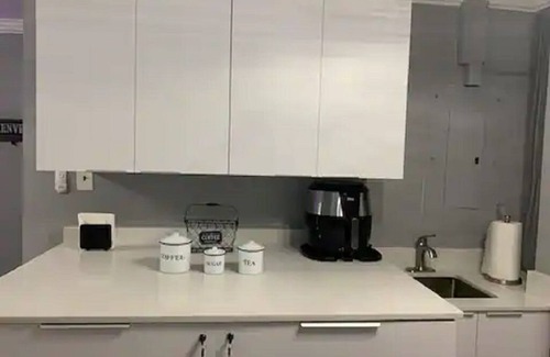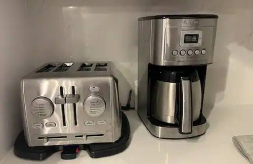 Kitchen is fully equipped w-all the amenities required: coffee machine, air fryer, blender, toaster pots/pans, knives, serving for 6 etc.