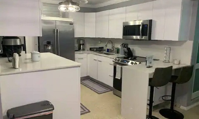 Great for family & friends! Stylish luxe condo which consist of 2 bedrooms w-2 beds +2 full baths, renovated kitchen with Quartz counter, living room, dining room and and balcony and (1) assigned parking.