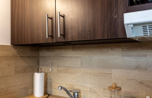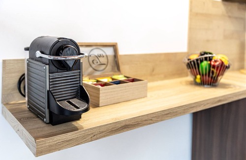 - the kitchen area, fully equipped with a microwave, a toaster, a sandwich maker, a kettle, a teapot, an Espresso machine and all the necessary utensils for 4 guests. You also have free teas and coffees! Don’t hesitate to help yourself 😊